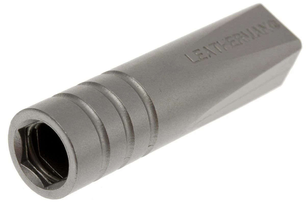 Avec ce bitkit vous ajoutez 10 outils supplémentaires à vos divers Leathermans qui en standard ne sont pas aptes pour un bitkit. Vous glissez la rallonge sur le tournevis en croix et vous pouvez utilisez un des cinq bits. Ensuite évidemment les bits entrent parfaitement dans le plus ample bitkit dans cet accessoire. Les bits standards hexagonaux correspondent eux aussi à votre tournevis électrique.